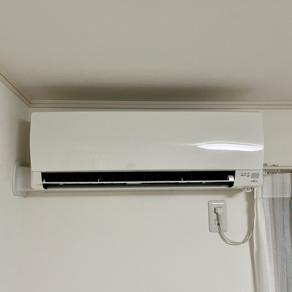 使用しているのは、富士通ゼネラルのスタンダードモデル(AS-A225)。お掃除機能などが付いていない、シンプルで使いやすいタイプです。