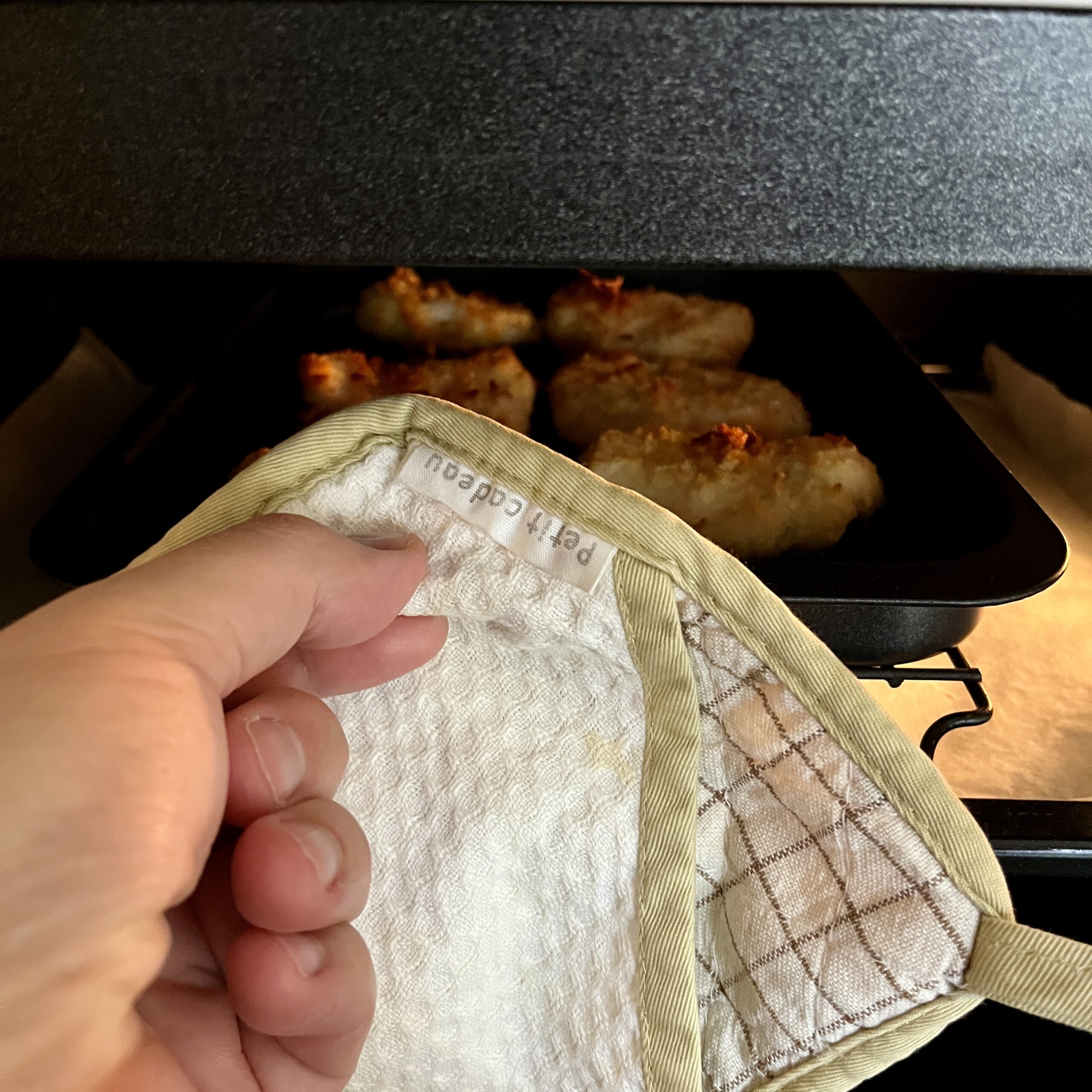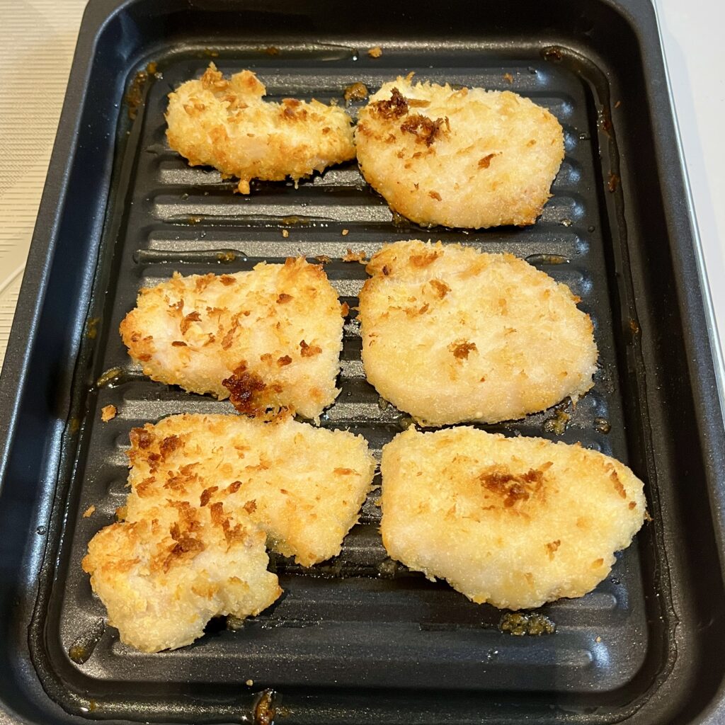 パン粉を使う料理は、網で直接焼くよりも、グリルトレーの方が圧倒的に楽。
