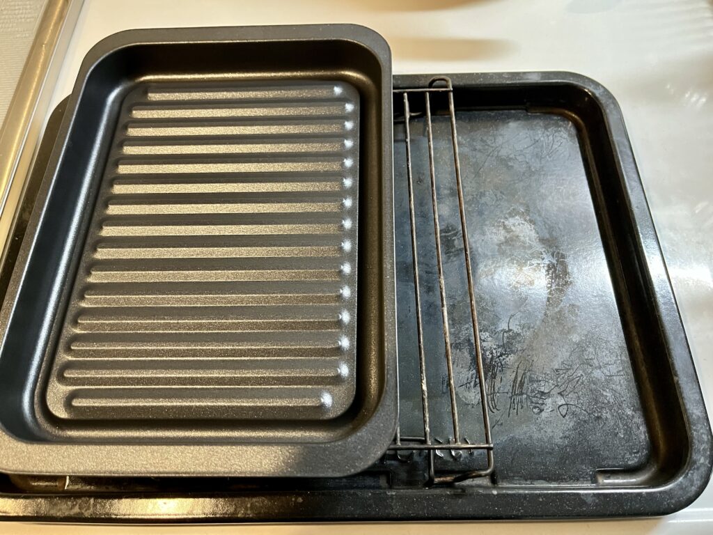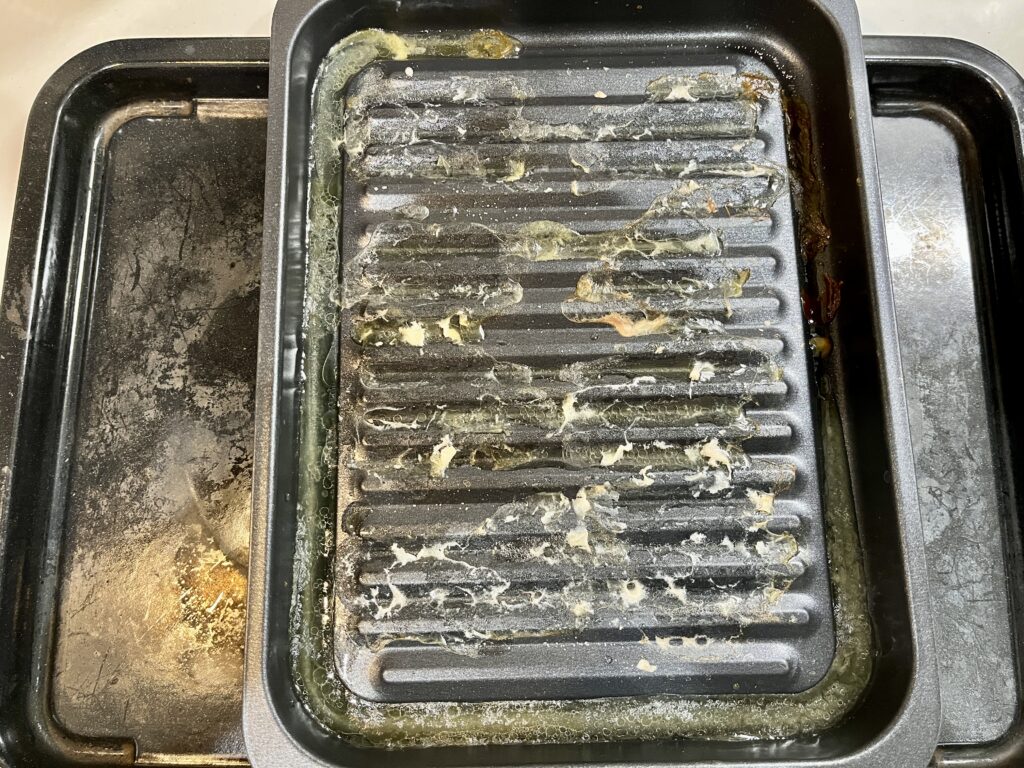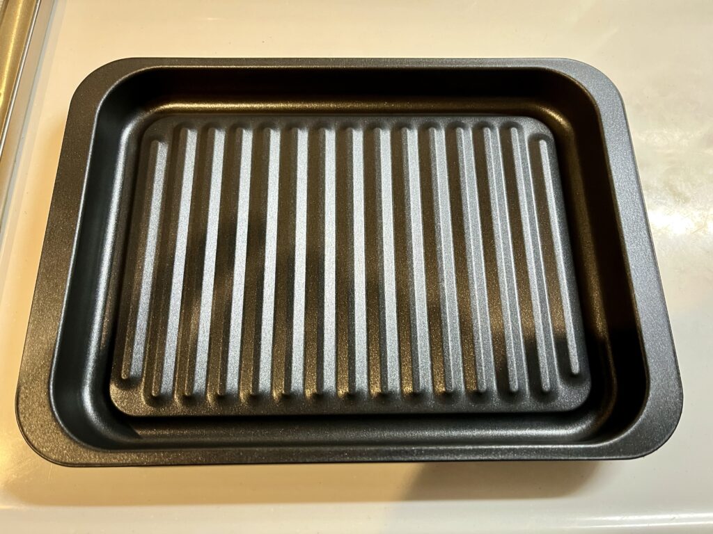 トレーの溝が余分な油を落としてくれるので、見た目もスッキリしています。