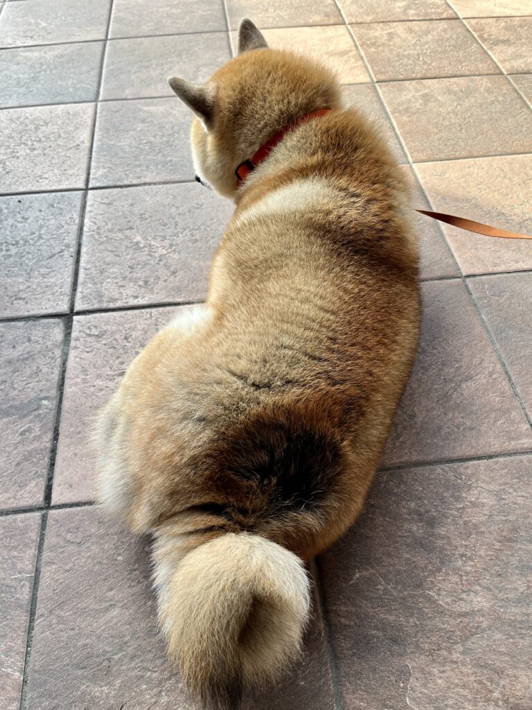 背中を向けて伏せている姿に、ちょっと申し訳ない気持ちになりました。
